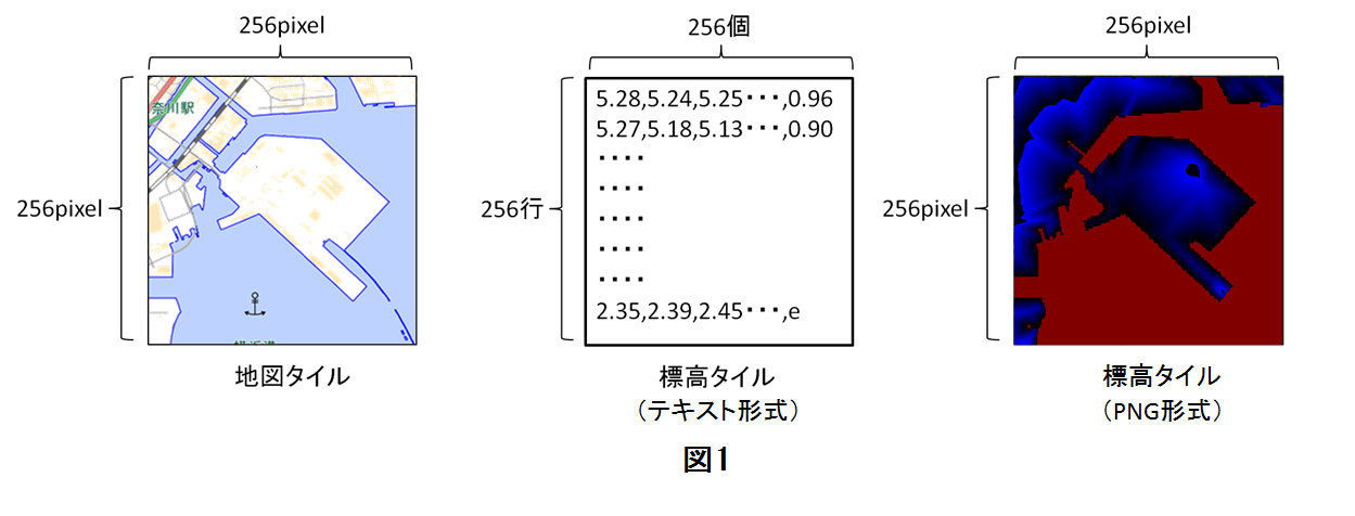 | ファイル拡張子 | png又はjpg | txt (1タイル約450KB) |