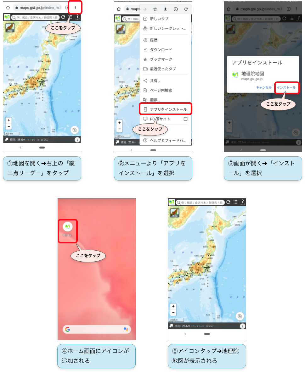 地理院地図に簡単にアクセスする設定アプリのように使用する